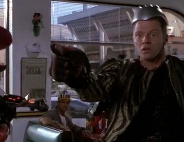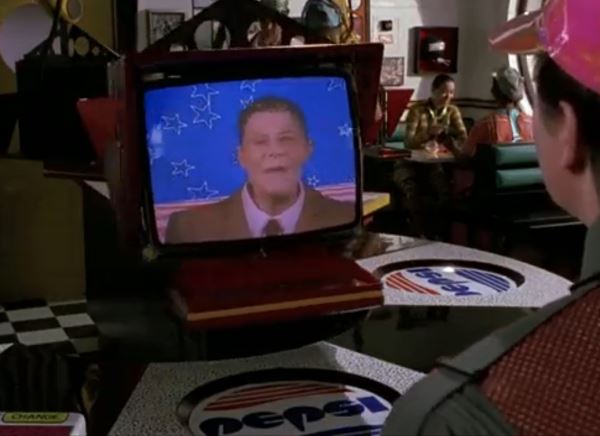 Толкан (слева) в роли директора школы мистера Стрикленда. Кадр из фильма «Назад в будущее»