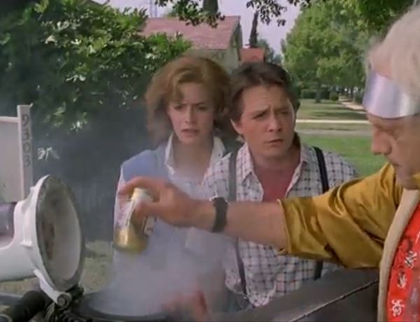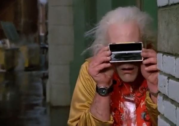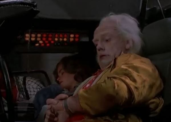 На руке у Дока Брауна «умные» часы, по которым он с точностью до секунды узнает прогноз погоды