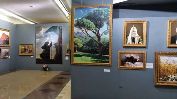 В экспозицию вошли портреты Патриарха Тихона, Елизаветы Федоровны, старца Илия, маршала Жукова, Патриарха Кирилл, объединяя собой историю России.