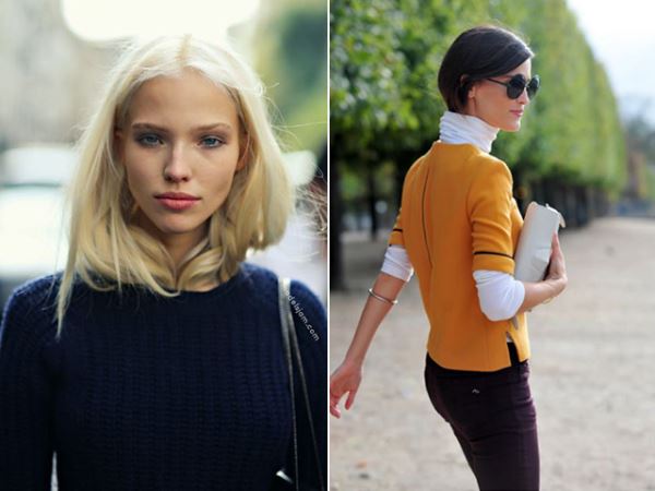 Даже короткие пряди, заправленные под плотный шарф или ворот свитера, создают модный акцент. Играйте на контрасте: темные волосы под светлым кашемиром, блонд — под черным пальто.