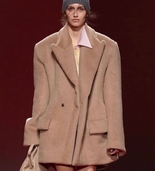 Оверсайз тоже уступает место силуэтам, подчеркивающим тело, — четкие плечи, талия обозначена. Ferragamo предлагает костюмы, построенные на хрупкости фигуры, а Bottega Veneta и Loro Piana показывают жакеты, пальто и плащи с акцентными плечами.