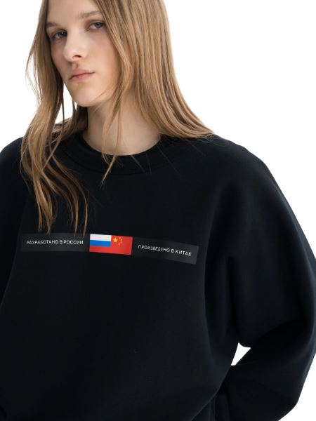 В оформлении вещей использованы характерные для марки графические элементы. Один из ключевых — надпись «РАЗРАБОТАНО В РОССИИ — ПРОИЗВЕДЕНО В КИТАЕ», которая становится самостоятельным визуальным акцентом и частью общей концепции коллекции.