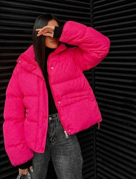 Антитренд: объемные пуховики кислотных, неоновых и слишком активных оттенков, особенно укороченные модели до талии.