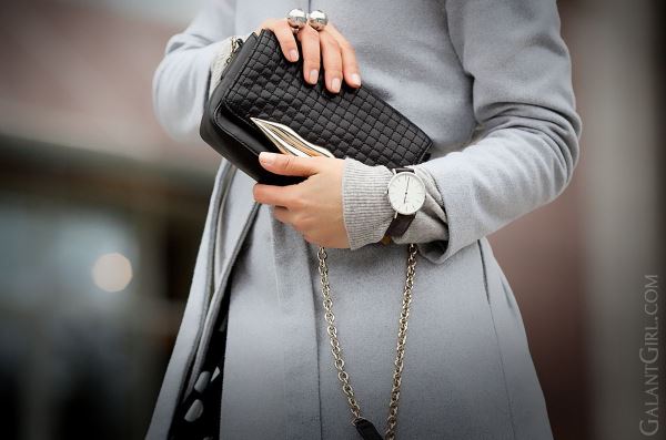 Чтобы вернуть аксессуару визуальное значение, нужно думать нестандартно: сделать часы заметным элементом образа, который перехватывает внимание и оживляет зимний монохром.