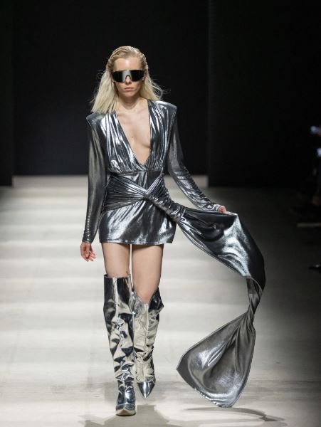 Металлик, заявивший о себе почти столетие назад, в этом сезоне переживает полноценный триумф. Дизайнеры словно включили машину времени и перенесли нас в эпоху золотого Голливуда и дерзкого диско 1970-х: подиумы вспыхнули сиянием вечерних платьев, безупречно скроенных жакетов и зауженных брюк, отливающих золотом, бронзой и холодным серебром.