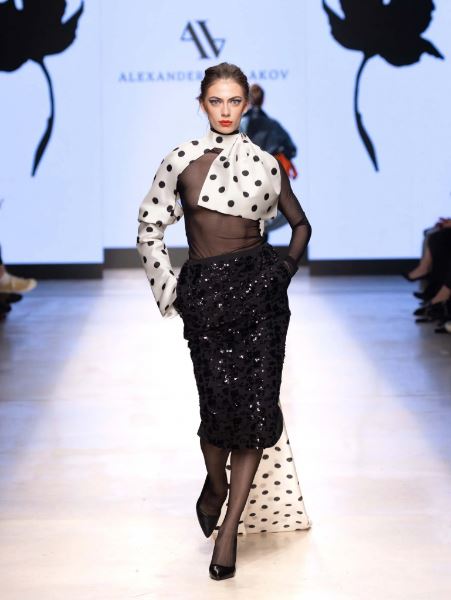 Еще одна дань истории — принт «полька дот», который буквально загипнотизировал гостей Московской недели моды. Сергей Сысоев представил платье с едва размытым узором, словно гороховые точки плыли по ткани. Александр Варлаков удивил гибридным балеро в горошек — с одним рукавом и шлейфом, развевающимся по подиуму. А екатеринбургский бренд Toomatch предложил оптическую игру — несколько изделий с разными гороховыми принтами в одном образе.
