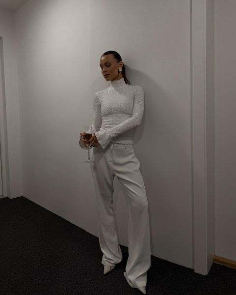 Белые брюки + сверкающий топ